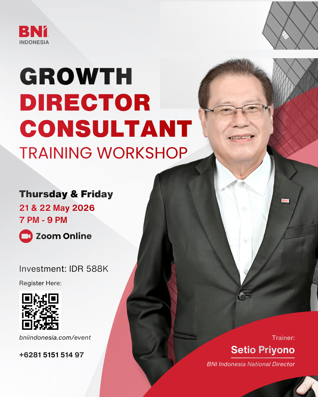 Dipandu langsung oleh Setio Priyono (National Director BNI Indonesia), Anda akan mendapatkan wawasan mendalam mengenai teknik konsultasi strategis dan bagaimana menciptakan efek riak ekonomi yang signifikan bagi seluruh anggota.